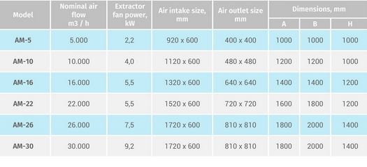The pressurized group is constructed with a load- bearing frame and insulated perimeter panels with interposition of rock wool. Drive train exhaust fan with double inlet transmission belt. Intake acrylic filter. Complete with damper adjustment.
