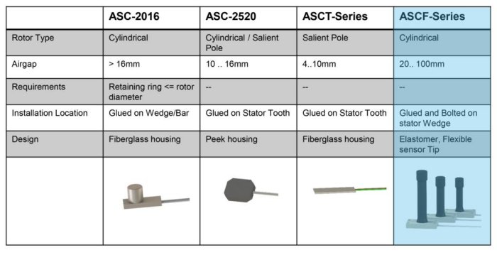 The Probe measures the variation of the magnetic flux created from each rotor coil. The sensor component is integrated within a flexible housing, allowing a safe installation of the rotor, even the retaining ring is bigger than the rotor diameter. The ASCF-Series Flux Probe withstands up to 2 Tesla and is designed to operate for up to 155°C. The integrated signal cable is available in length of 5, 10 or 15m and if If longer signal cables are required, a signal driver is available.