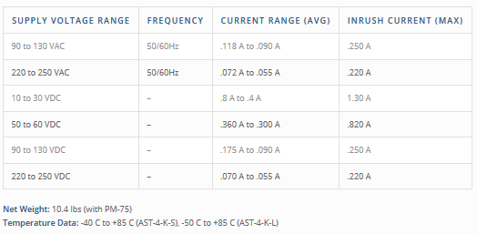Note: Performance tested to start and operate at -50C