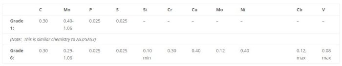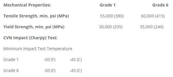 (Note: This is summarized information from ASME Specification A333. Please refer to the specific Standard or Specification or contact us for more details.)