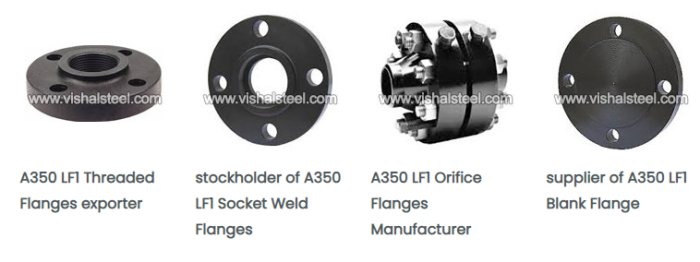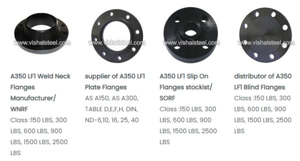 Material : ASTM A350 LF1 CL1/CL2. Size Range: 1/2″ (15 NB) to 48″ (1200NB), ASME B16.47 Flanges size range: 26″ to 60″. Typical manufacturing specifications: A350 LF1 , ASME A350 LF1. Origin: European Origin, Indian Origin, US Origin, Korean Origin, Sweden Origin, Ukraine Origin, Japanese Origin Materials. LTCS A350 LF1 Flanges Manufacturing Dimensions: ANSI/ASME B16.5, B 16.47 Series A & B, B16.48, BS4504, BS 10, EN-1092, DIN, etc. Standard: ANSI Flanges, ASME Flanges, BS Flanges, DIN Flanges, EN Flanges, etc. Class / Pressure: 150#, 300#, 600#, 900#, 1500#, 2500#, PN6, PN10, PN16, PN25, PN40, PN64 etc. Flange Face Type: Flate Face (FF), Raised Face (RF), Ring Type Joint (RTJ), LJ, FM , R.T.J , R.J and so on. ANSI ClaLTCS A350 LF1 Flanges: 150 to 2500 Size: 1/2"-24". AWWA ClaLTCS A350 LF1 Flanges: classes B, D, E, F Size: 3"-144". ANSI B16.5 A350 LF1 Flanges pressure classes: 150, 300, 400, 600, 900, 1500 and 2500 for ASME B16.5.
