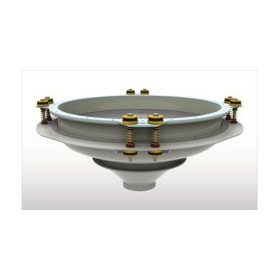 The BAS Bin Activator is a device of half convex, half conical shape. Set in vibration it facilitates material flow from hoppers or silos. The BAS Bin Activator is a device of half convex, half conical shape. Set in vibration it facilitates material flow from hoppers or silos. It consists of a seamless carbon or stainless steel cone, manufactured on a sheet metal lathe, a seamless SINT engineering polymer seal with integrated upper and lower flange, suspensions for connection of the Bin Activator with the silo, as well as one or two OLI electric motovibrators.