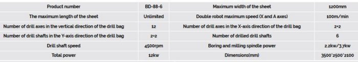 High efficiency: daily processing area up to 350 square meters. High precision; free test. High performance: six-sided hole, milling slot, hinge one-time completion. Double robot control, effectively indicating the processing efficiency of long plates. Machinable board size is optimal at the same level. Advanced light-eye detection safety reminder function: avoid misplacement of the board and damage the drill bag.
