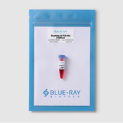 BlueAmp 2X PCR Mix is a cocktail of calculated amounts of Mg2+, dNTPs, and recombinant Taq DNA Polymerase for highly efficient amplification of nucleic acid templates by the polymerase chain reaction (PCR). BlueAmp 2X PCR Mix is very stable, and no detectable reduction of PCR performance or enzyme activity is observed after storage for 12 months at 4°C. Repeated freeze–thaw cycles do not reduce performance or activity.