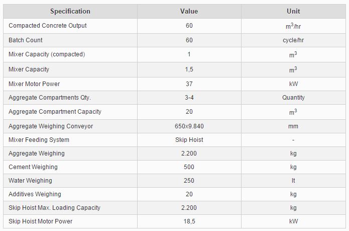 Fast Site Erection and Setup. Concrete Foundation Not Required. Minimum space requirements due to skip hoist design. Efficient energy consumption. Hardwearing Mixer Linings. Designed in conjunction with international transport standards. Factory wired, plumbed and tested. Operating cost efficient design. Seperated in-line agregate bin.