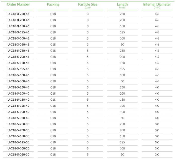 Model C18 - HPLC Columns -Automates Chromatography Instrumentation