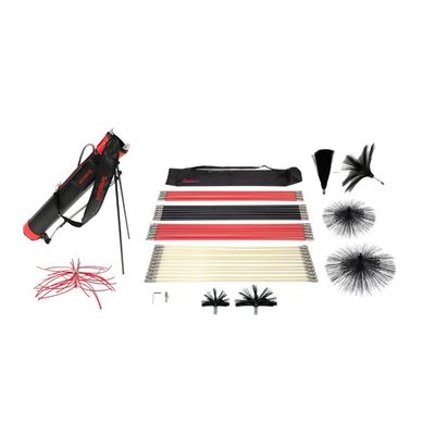 New! Stainless Steel fittings connect like butter and won’t rust! Our rotary rod systems are the most user friendly and durable rotary cleaning system for air duct cleaning. If you’ve used cable drive systems, you know how they are cumbersome to use, require two man operation and break often. Our SnapLok® system is extremely effective, efficient and is completely one man operation. It has far more versatility than cable drives with a wide selection of rotary cleaning heads and rod sizes. This kit is great for rotary cleaning main trunk lines and branch runs in air duct systems. The mix of different size rods allows you to use the more flexible rods through an access hole while the larger diameter rods can be added once you are in the duct work a long distance. The larger diameter rods will also give you more control when working from the end of the duct work on longer runs. The freestanding rod caddy keeps your rods easily accessible when working in the standing position. The 1/2" dia. rods work great for branch runs from 6" dia. up to 14" dia. The rods are flexible yet have enough stiffness to go long distances. The rods also have stainless steel fittings which are very smooth to connect and disconnect and extremely durable. The brushes are soft enough to be used in flex duct and provide a nice wiping action inside the duct.
