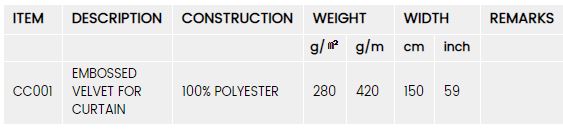 Model CC001 -Velour Emboss Curtain Upholstery Polyester