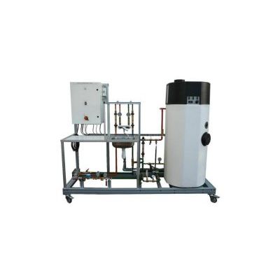 The unit comes complete with technical and educational manuals. Design, manufacturing and industrial material. This installation is composed of an aluminum bench on multidirectional wheels. The didactic interest is directed towards various levels and fields of studies. Thermodynamic heater, capacity 290 L tank with electric heater (power 1500 Watts). Heat exchanger for connection to a heating or solar installation in supplement. Heat pump power : 1870 Watts. Coefficient of performance from 3.4 to 45°C according to EN 255. Refrigerant R134a.