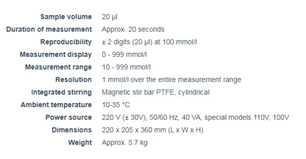 - Ready-to-use electrolyte (acid buffer and stabilization additive); complies with IVD