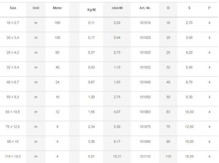 A 4-m pipe from among the highest pressure range, suitable for hotwater distribution systems, applications in high-rise buildings, apartment and panel buildings. It is predestined to be used in industrial and agricultural plants thanks to its high chemical resistance. Available in White, Gray and Green colors. Standards: DIN 8077, DIN 8078, EN ISO 15874.