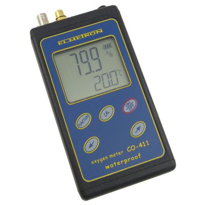 - Measures oxygen dissolved in water in % and mg/l, oxygen in the air in % and temperature.