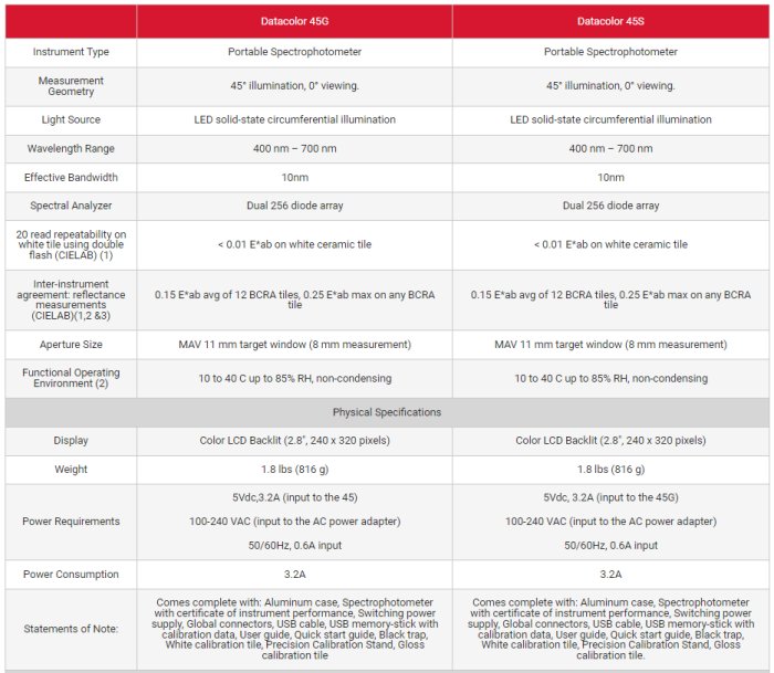 - The Datacolor 45S provides color control for close correlation to visual color assessment and comes with a long-lasting, rechargeable battery that provides reliable results for up to 2000 measurements