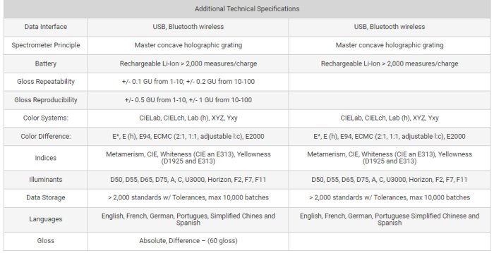 - The Datacolor 45G with additional built-in 60° gloss meter that enables simultaneous measurement of color and gloss with high repeatability