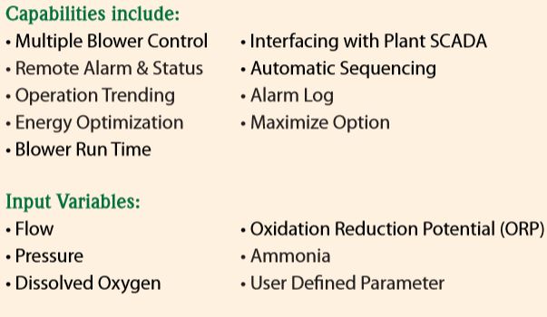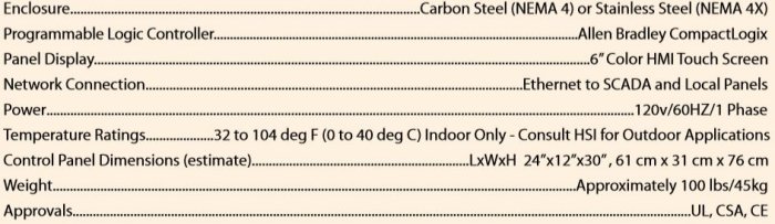 The HSI CP 4100 control panel sequences operation of multiple blowers on a common header. The sequencer automatically starts and stops the blowers and adjusts the flow rate to satisfy the input variable demand. CP 4100 is fully plug and play compatible with HSI Local Control Panels of MC Series (Multistage) and HT Series (Turbo) type controllers. HSI can also customize to control other types of centrifugal blowers.