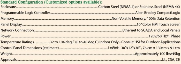 The HSI CP 5100 is a controller that combines the full functions of the HSI CP 4100 Sequencing Panel and adds the ability to control most wastewater process systems. The CP 5100 is fully plug and play compatible with HSI Local Control Panels of MC Series (Multistage) and HT Series (Turbo) type of controllers. HSI can also customize to control other types of centrifugal blowers.