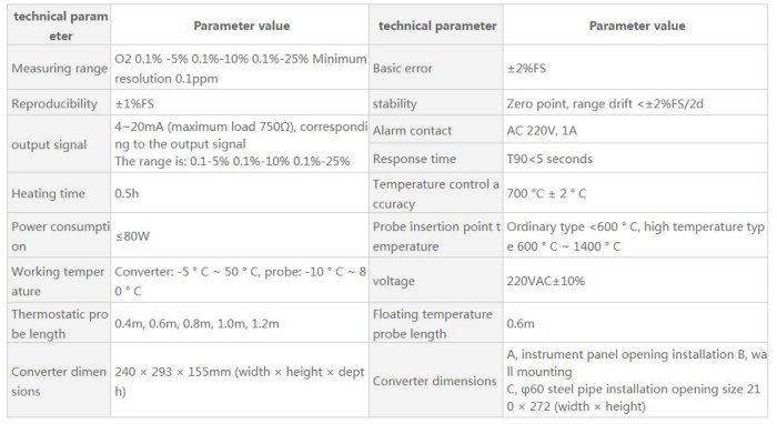 - The detector adopts all-ceramic structure, which is especially suitable for on-line detection of oxygen under high temperature (600~1200 °C) gas.