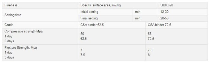 - As semi-products various special cements, CSA Binder can be used for making rapidsetting cement, expansion cement, self-stressing cement.