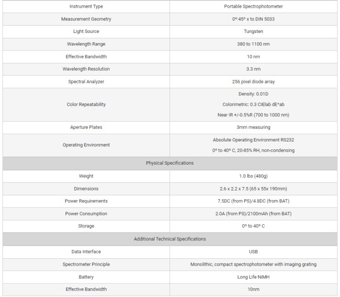 - Datacolor 45IR Spectrophotometer – NIR – Densitometer