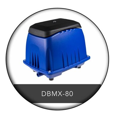 The DBMX series pumps are our new linear air pumps, that are encased in aluminum body for reliablity, durability and better cooling efficiency. With a built-in thermostat to prevent overheating, the pumps are suitable for use in aerobic wastewater treatment, aquariums, fish farms, hydroponic systems and more. Some key features of DBMX series pumps include strong and constant flow, low noise level, efficient power consumption, long lifespan, built in thermostat that cuts off the power when temperature gets too high. Their performance range is from 40 to 80LPM (1.41~2.83CFM) at a rated pressure of 147mbar (2.13psi). Maximum pressure is 362~490mbar(5.25~7.10psi).
