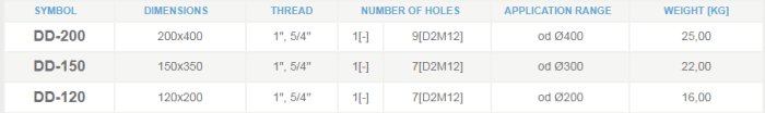 - the nozzle available in the models: DD-120, DD-150, DD-200