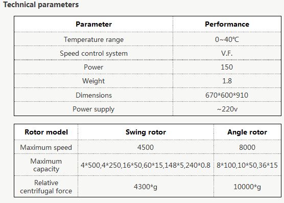 DL-8M refrigerated centrifuge is mainly used for biology, medicine, radioimmunoassay, chemistry, petrochemical industry, laboratory and clinical research. This centrifuge has large capacity, simple structure, and is easy for operation and widely applied. It is compatible to various conventional tubes and vials, and applies high-strength protection layer and imbalance, overspeed and overtemperature precautions. The main unit (refrigeration unit, inverter) is imported, safe and reliable and has low noise.