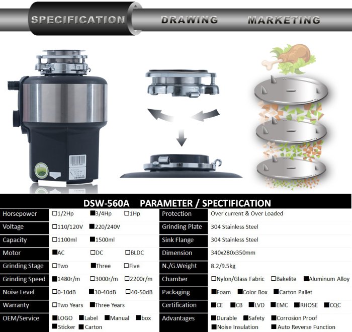 - Name: DSW-560 kitchen food waste disposer