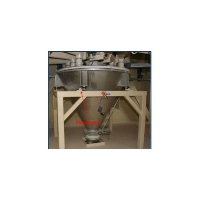 Possible electric voltage potentials between the cone funnel and the substructure are equalised through an earth cable. The lid of the individual inlet connections is mounted separately and is only attached to the funnel cone through a dustproof, air-permeable elastic connection. The outfeed is implemented with a rotary valve. The following machine technology and piping is also elastically connected to the proportioning scale.