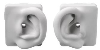 The symetrical pinnae for Head and Torso Simulator (HATS) Types 4128C and D are used to obtain an identical positioning of the right and left part of the headset. The symmetrical pinnae come in a soft (OO-35°) and hard (OO-55°) version, both complying with the IEC and ITU-T recommendations.