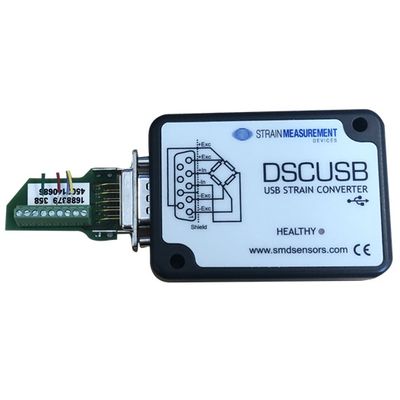 The DSC USB Strain Module is a compact, high-performance strain gauge digital signal conditioner with USB connectivity aimed at applications that require high-accuracy measurement and repeatability. A rugged and compact ABS IP50 enclosure makes this device suitable for all environments. By simply plugging the device into a PC, data can be extracted from most strain gauge bridge input sensors and acquired by software which allows data manipulation, removing the need for amplifiers, filters, and multimeters. No additional power supply is required.
