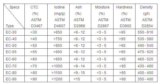 Model EC -Steamed Anthracite-Coal Based Extruded (Pellet) Activated Carbons