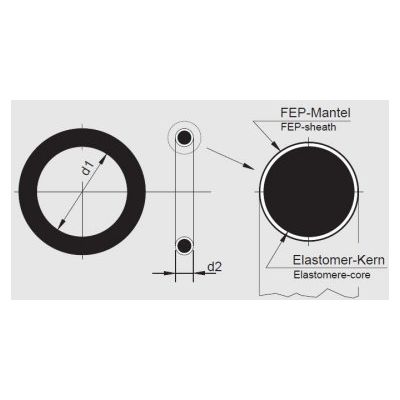 FEP O-rings are available in the same dimensions as elastomer O-rings. Due to the FEP shell, and depending upon the different cross section, the minimal values of the inside diameter dl must be maintained. Table 1 lists the respective limit values.