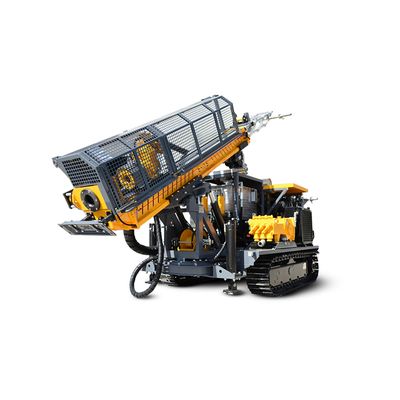 Skid mounted fully hydraulic multipurpose drill rig; complete with synchronized rod handling system optionally can be equipped with turntable and hydraulic worm gear to allow drilling in all directions underground.: S