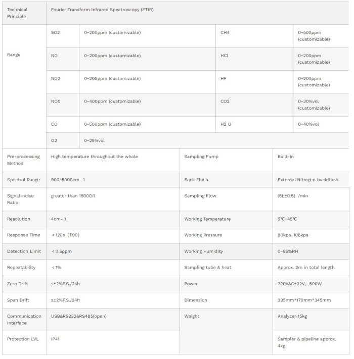 - It can measure SO2, NOX (NO, NO2), CH4, HCl, HF, CO, CO2, O2, H2O and other components at the same time, and other measurement components can be added as needed, such as SO3, N2O and various VOCs gas