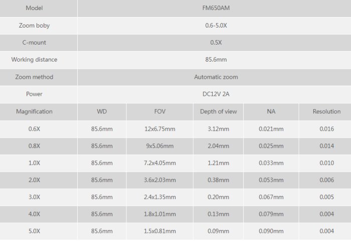 - Model FB650AM - 0.6-5.0X Auto Zoom Lens