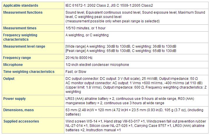 Compact, lightweight design for easy one-handed operation. 30dB to 130dB. Analog output.