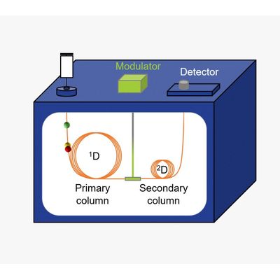 Comprehensive two-dimensional GC, or GCxGC, drastically increases separation power by adding a second analytical column after the first column. A modulator placed between the two columns pulses the analytes from the first column onto the second column. When the columns are orthogonal in separation power, this technique can result in an order of magnitude increase in the number of analytes that can be detected.