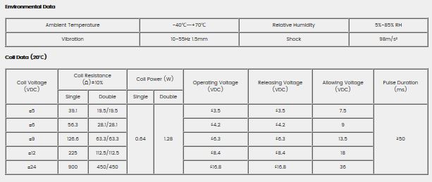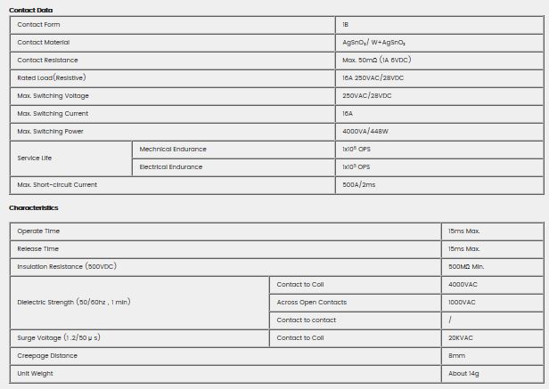 16A contacts switching capability. Only impulse excitation needed, both for single and double coil. 4KV dielectric strength between coil and contacts. RoHS compliant. Outline dimensions: (25 x 13 x 17) mm. VDE Certificate NO.: 40030447. UL Certificate NO.: E340054.
