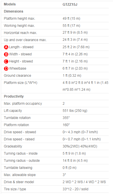 - Model GTZZ 15J - Articulated Boom Lift
