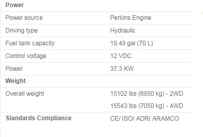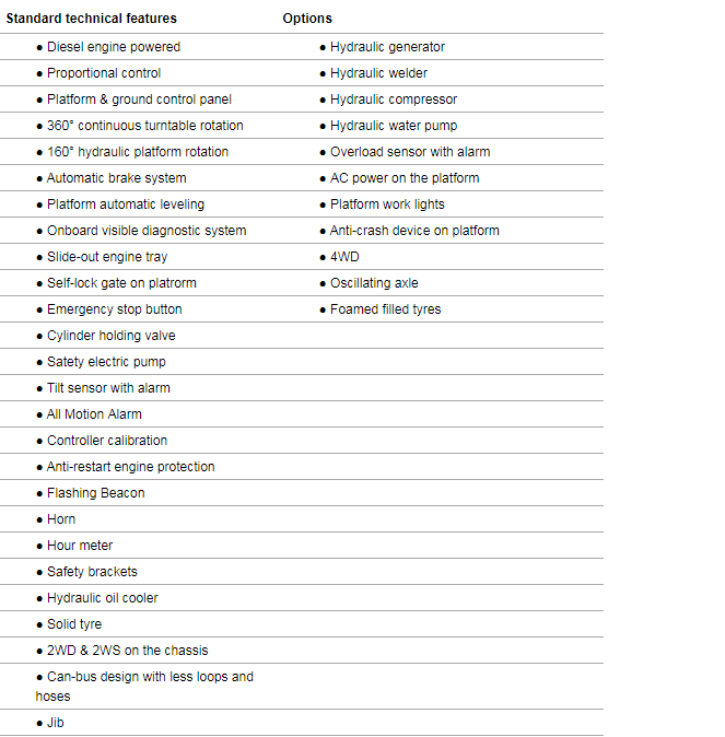 Options available for:Foamed filled tyre,4WD,Oscillating axle,Engine cool boot,AC Power to platform.