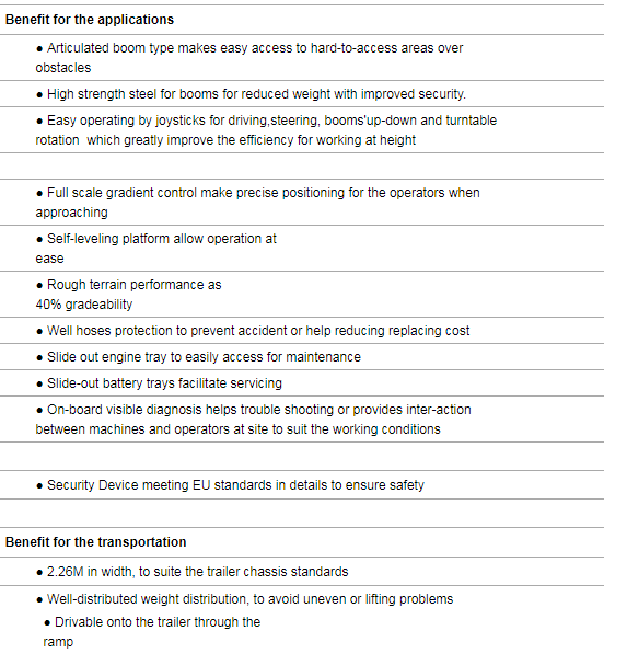 Platform height 15.8m,Working height 17m,Outreach 8.5m,Payload 250kg,Cummins Engine,With Jib