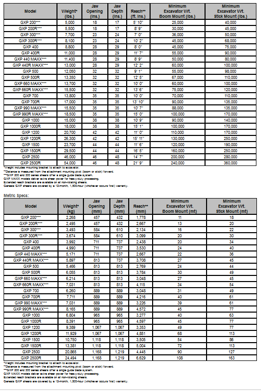 This Genesis mobile shear, the GXP, delivers the power and performance you need for increased reliability, uptime and profit. And with a wide range of models, XP mobile shears mount second- and third-member to most excavators and to the boom tip of most material handlers. Genesis XP mobile shears offer unparalleled quality and design and some of the most feature-rich advancements of any scrap shear or demolition shear on the market, including:
