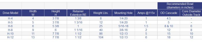 These drive units are designed for 5 to 18-inch-diameter cascade bowls and 6 to 12-inch core-diameter outside-track bowls. This unique design provides good stability and smooth feed because the base weight is concentrated in the corners. The drive units have a single vertical coil and are A.C. operated providing 120 vibrations per second. The 20 degree spring angle has proven best for most applications using small and medium size bowls. All bowls used with these drive units are mounted with one center screw.
