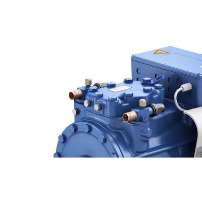 The semi-hermetic HA series from BOCK was specially developed for low temperature cooling and prevents excessively high final displacment temperatures. The drive motor and cylinder heads of this reciprocating compressor are air-cooled via a compact ventilation unit. The refrigerant gas is sucked in and condensed directly by the compressor.