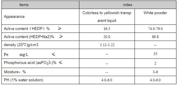 HEDP Na2 is an organophosphonic acid corrosion inhibitor, it can chelate with Fe, Cu, and Zn ions, it can dissolve the oxidized materials, it has good scale and corrosion inhibition effects even under 250℃, it is stable under high pH value, not easy to be hydrolyzed, not easy to be decomposed under normal light and heat condition, its acid/alkaline and chloride oxidation tolerance are better than that of other organophosph-onic acids. HEDP Na2 can form six-ring chelating compounds with metal ions in water system, Ca2+ in particular. HEDP Na2 has good scale inhibition effects and obvious dissolution threshold effects. When used with other Water Treatment Chemicals, the synergistic effects is better.