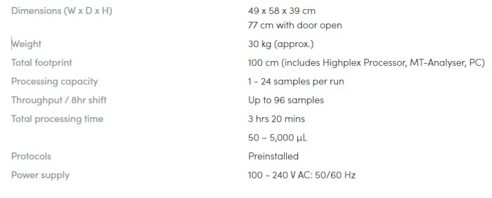 Separated processing and analysis allows optimal workflowWhile the second step of MT-PCR is being performed in the MT-Analyser, the next run can be set up in the Highplex Processor, allowing parallel processing and optimal use of time.