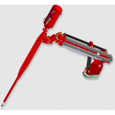 The HopperPopper by Pneumat Systems re-fluidizes caked and compacted product with high-volume blasts of pressurized air. The operator maneuvers a powerful hydraulically-driven probe inside the hopper trailer, releasing air blasts as needed to open a flow channel and clear away bridges and hang-ups.