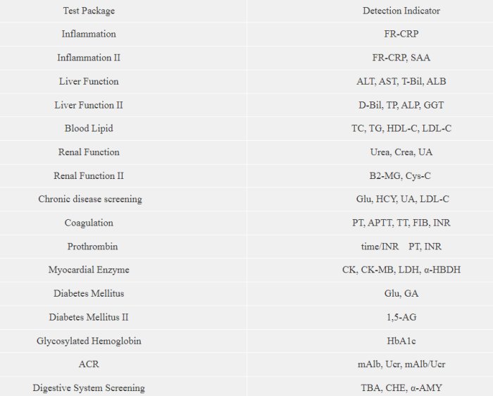Features: 16*Cartridges, 37*Indicators, including coagulations, specific proteins, biochemicals, etc. (More available indicators are coming soon!) Accurate: Liquid phase reaction system. Fast: Instant detection is designed for `individual`. Easy-to-use: No need for professional operation, calibration and maintenance. Economic: Reduce test cost without additional consumables. Advanced: Cascade up to 3 instruments, intelligent data upload and management. Convenient: Pre-filled reagent card, the project covers basic biochemical and coagulation indicators
