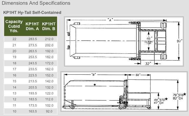 - The KP1HT’s 1 cubic yard loading chamber, with a generous 32″ x 46″ clear top opening and 44″height, loads easily from chute, dock or ground level.
