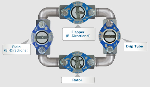 Unit my be mounted in any direction. Right to left flow is standard. Specify if left to right flow is required. Rotor is highly visible. The units are designed for clear, translucent or dark fluids. Standard rotor material is Delrin. PTFE is available as an option.